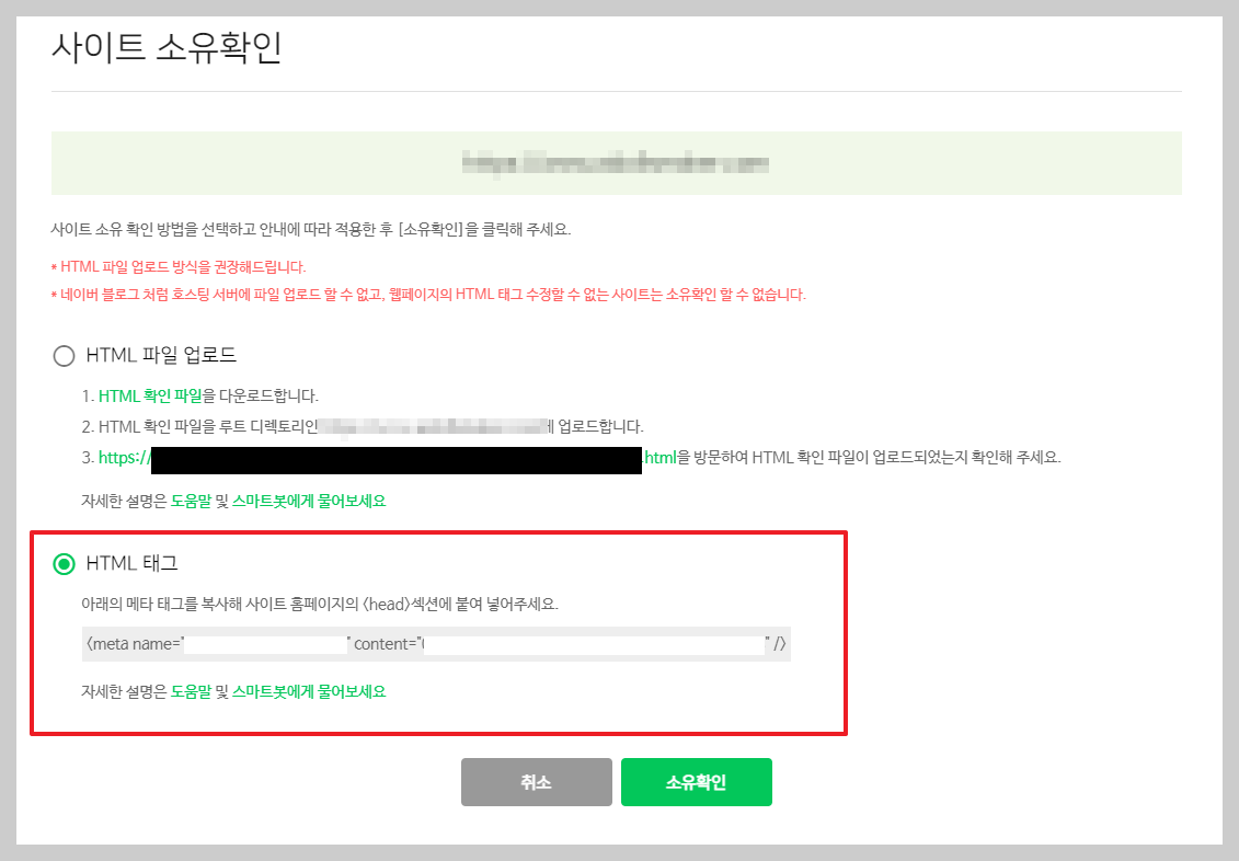 그 다음으로는 사이트 소유 확인 창이 뜹니다.