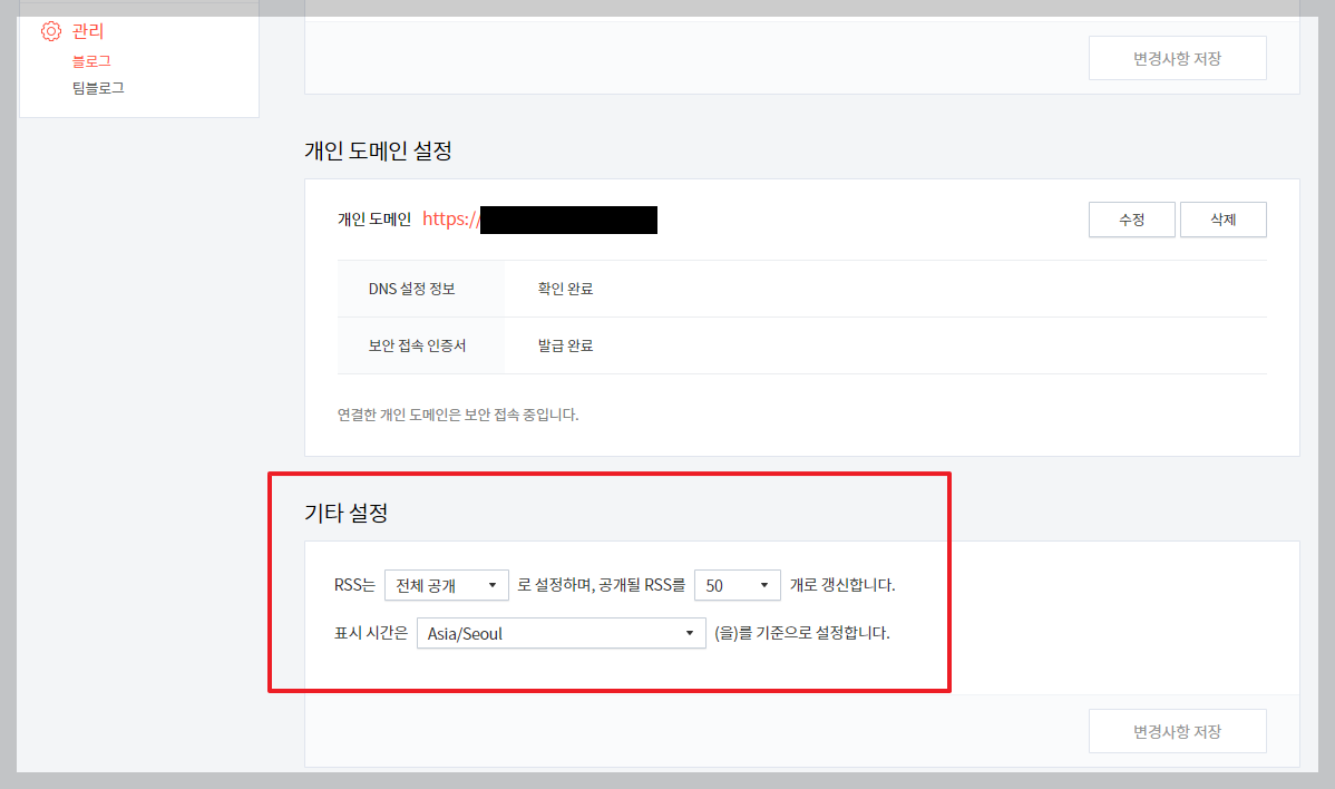 경로 : 블로그 관리 > 관리 > 블로그 > 기타설정