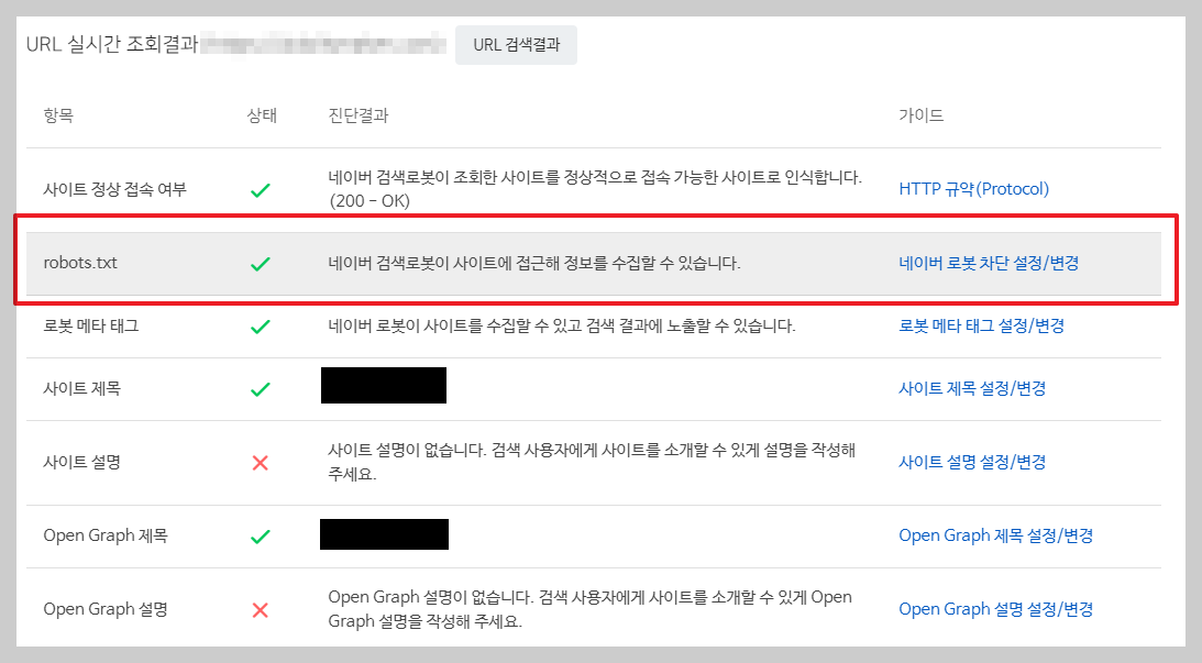 경로 : URL 클릭 > 검증 > robots.txt
